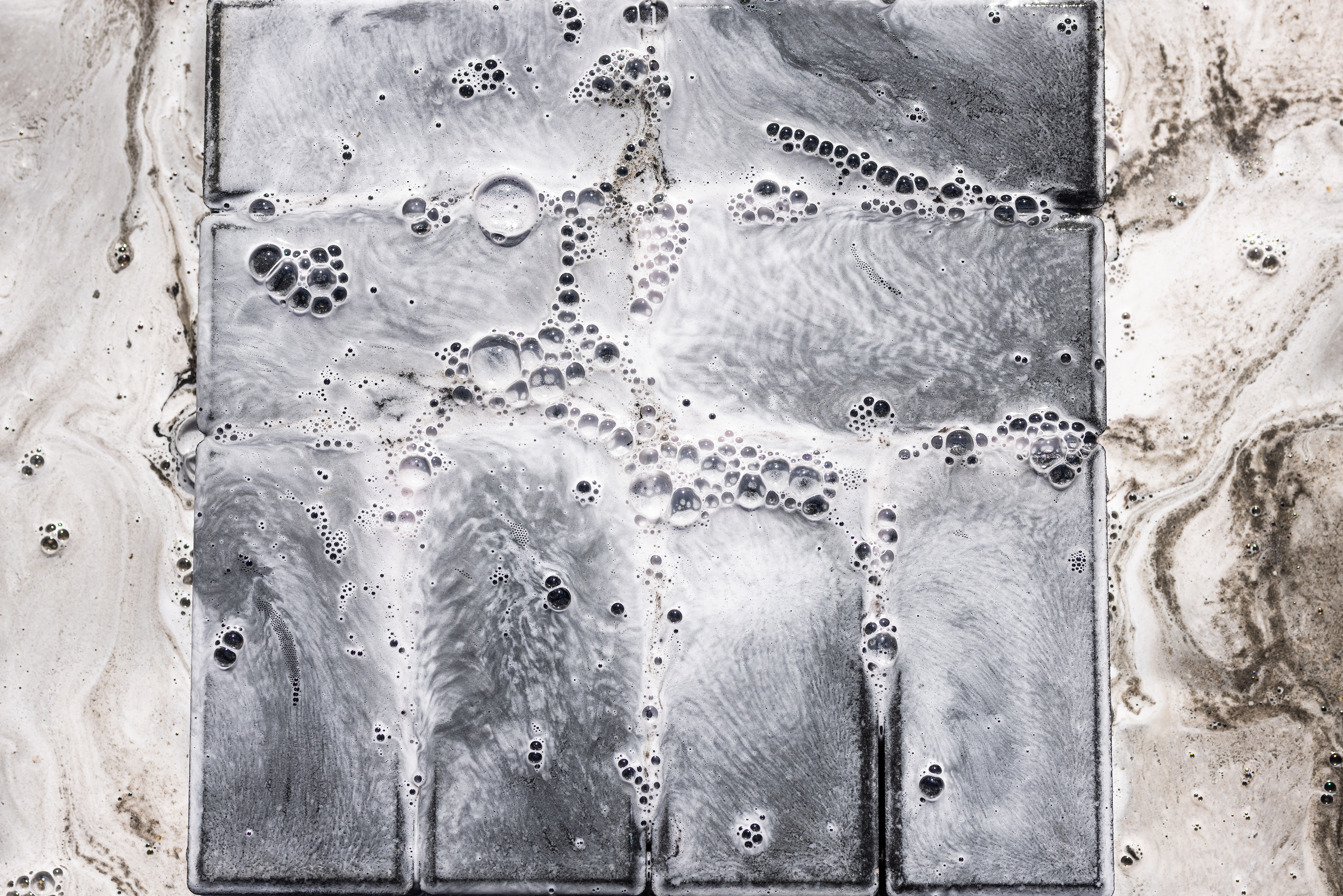 LABAI SVARBU! Netinkamai naudojama priemonė gali sugadinti paviršių. Pavyzdyje matome kaip priemone padengiamas sausas paviršius ir nesekamas priemonės veikimo laikas. Primename priemonė dengiama tik ant šlapio paviršiaus ir paliekama veikti tik iki vienos minutės. Šiuo atveju nesilaikant instrukcijų gadinamas paviršius ir galutinis rezultatas atrodo prasčiau nei pradinis.